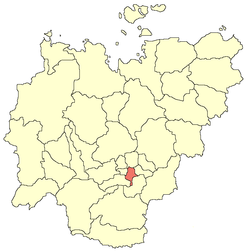 Megino-Kangalassky District (Russian: Ме́гино-Кангала́сский улу́с; Yakut: Мэҥэ Хаҥалас улууһа, Meñe Xañalas uluuha, IPA: [meŋe xaŋalas uluːha]) is an administrative[1] and municipal[4] district (raion, or ulus), one of the thirty-four in the Sakha Republic, Russia. It is located in the central part of the republic, on the Lena River opposite Yakutsk, the capital of the republic. It borders with Ust-Aldansky District in the north, Churapchinsky District in the east, Amginsky District in the southeast, Khangalassky District in the southwest, and is bounded by the Lena River in the west. The area of the district is 11,700 square kilometers (4,500 sq mi).[2] Its administrative center is the rural locality (a selo) of Mayya.[2] Population: 31,278 (2010 Census);[6] 32,288 (2002 Census);[9] 31,623 (1989 Census).[10] The population of Mayya accounts for 23.3% of the district's total population.[6]