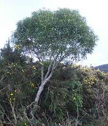 Melicytus lanceolatus, commonly called Narrow-leaved māhoe or māhoe-wao, is a small tree of the family Violaceae endemic to New Zealand.[1]