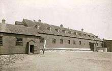 British officers from the Halifax garrison conducted inspections of the prison four times per year, and maintenance was carried out either by the prisoners themselves or by soldiers from the Halifax garrison.[99] The prison also housed a schoolroom and chapel, both staffed by army personnel.[98] A new stone prison was built before 1905 next to the older wooden barracks, as well as housing for warders and their families. The new building alleviated reported problems with lack of lighting and ventilation in the previous structure.[100] In December of that year, the Canadian Permanent Force took over wardenship of the prison, at which time there were three remaining prisoners.[101] The land was granted to the Canadian Government as the British left Nova Scotia in 1907. The name was changed in 1909 from "military prison" to "detention barracks", reflecting a shift in attitude towards incarcerated military personnel: inmates were known as detainees, not prisoners, and after their discharge from the military they maintained no permanent criminal record.[100]