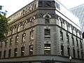 The Judd Building at the corner of Merchant and Fort Streets combines elegant features of Italianate architecture with businesslike functionalism. Designed by Oliver G. Traphagen, newly arrived from Duluth, Minnesota, it boasted Hawaii's first passenger elevator when it opened in 1898. A fifth floor was added on top in the 1920s, the interior was remodeled in 1979, and the ground floor has also been reconfigured. However, the exterior of the middle three floors reflects Traphagen's original design, with arched windows, simulated keystones, and decorative wreaths and floral designs. Built on land that used to house the medical offices of Dr. Gerrit P. Judd,[7] the new building served as the first headquarters of Alexander & Baldwin, and also of the Bank of Hawaii until 1927. The bank bought the building in 1998, and A&B repurchased it in 2000.[8]