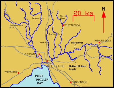 Coordinates: 37°45′35″S 144°58′53″E / 37.759756°S 144.981482°E The Merri Creek is a waterway in southern parts of Victoria, Australia, which flows through the northern suburbs of Melbourne. It begins near Wallan north of Melbourne and flows south for 70 km until it joins the Yarra River at Dights Falls. The area where the creek meets the river was traditionally the location for large gatherings of the Wurundjeri people and is suspected to have been the location for one of the earliest land treaties in Australia between Indigenous Australians and European settlers.