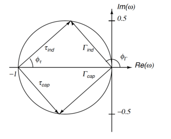 The result of drawing vs. in the complex plane is a unit half circle centered on the point which is in the upper half-plane for inductive grids and in the lower half-plane for capacitive grids. At all frequencies the transmitted and reflected waves are out of phase .[5]