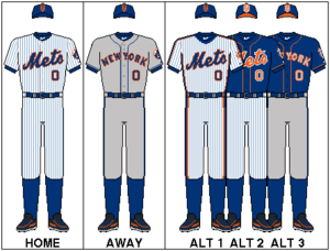 - ↑ "NY Mets Show Off Two New Blue Alternate Jerseys | Chris Creamer's SportsLogos.Net News and Blog : New Logos and New Uniforms news, photos, and rumours". News.sportslogos.net. Retrieved January 27, 2013.