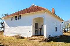 Four buildings have served as the school. Erected on land owned by local resident Fritz Lochte, the original structure was a 96 square feet (8.9 m2) shingle-roofed log cabin. In the post-Civil War years, enrollment included students whose parents had been slaves on an area cotton plantation.[3][4] On the same property, the log cabin was replaced by a larger stone structure in the 1880s. In 1897, local resident Louis Bonn deeded an acre of his land over to the school. A new 1-1/2 story frame structure was erected to house the school. The current building was the fourth building to serve as the school. It was erected in 1931.[2][5]