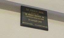 In January 1995 Hordern was invited back to his old college in Brighton, where a room was named in his honour.[185] Inside, the college had commissioned the sculptor Peter Webster to create a bronze bust of the actor which is displayed with a plaque. Hordern's last physical acting role came shortly afterwards as Lord Langland in the comedy film A Very Open Prison.[186] This was followed by two narration performances, firstly in Spode A History of Excellence,[187] and then in the five-part film Dinosaurs and Their Living Relatives.[188]