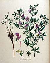 - "Lucern grows naturally with one large perpendicular, or tap-root, which penetrates very deep into the earth, and has few, if any, lateral roots. From similar experiments on other tap rooted plants, I was induced to think, that this too, by transplanting it, and at the same time cutting off part of its tap-root, might be made to shoot out several horizontal roots, which, reaching into the loose mould of the alleys, and extending themselves there, would collect a greater quantity of nourishment for the plant, and consequently enable it to produce more abundant crops."[17]