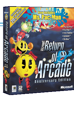 In 2000, to celebrate Pac-Man's 20th anniversary, Microsoft re-released Return of Arcade and added Ms. Pac-Man (as presented in Revenge of Arcade) to the roster of games. None of the other games from Revenge of Arcade were included. This updated package was called Microsoft Return of Arcade: Anniversary Edition.