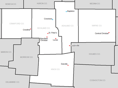 | Crestview | Cougars | Ashland (Weller Township, Richland County) | Red, White, Black |