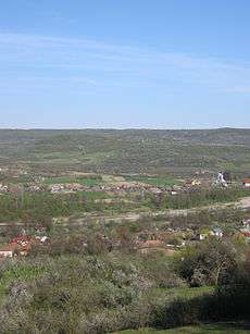 Mihăeşti and Râul Târgului, seen from the west (spring 2011) | |