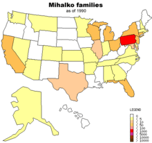 The name Mihalko, Михалко, originates from Hungary, Belarus and Ukraine. The majority of the Mihalko families in the United States are located in the northeastern portion, primarily concentrated in the state of Pennsylvania.