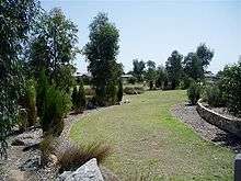 The Mikawomma Reserve is found in the suburb of Woodville Gardens on the corner of Liberty Grove & Ridley Grove in South Australia, Australia. Mikawomma is the Kaurna name for the plain that lies between Adelaide and Port Adelaide. On (at) Mika plain, lived many old men (Teichelmann & Schurmann, 1840: 16 Grammar section). The Kaurna people are the traditional custodians of the Adelaide Plains area. The landscape design and the artworks in Mikawomma Reserve reflect indigenous plants and animals as well as culture and history.[1]