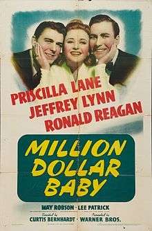 Million Dollar Baby is a 1941 romantic comedy film directed by Curtis Bernhardt. Released by Warner Bros., the film stars Priscilla Lane, Jeffrey Lynn, and Ronald Reagan, with May Robson and Lee Patrick.