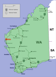Minilya is a location in Western Australia north of Carnarvon on the North West Coastal Highway. It is at a junction in the North West Coastal Highway, where the turn off to Exmouth is 220 kilometres from that location. The main highway then continues to the next junction 217 kilometres further, at Nanutarra Roadhouse. At the 2006 census, Minilya had a population of 137.[1]