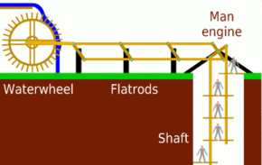 Until the beginning of the 19th century the miners of the Upper Harz had to enter and leave the mine using ladders. Towards the end, for shaft depths of around 700 metres this took up to 2 hours of the daily work time. This effort was almost impossible for older miners. In 1833, master miner (Oberbergmeister) Georg Ludwig Wilhelm Dörell (1793–1854) came up with a simple, but ingenious mechanical method of getting in and out of the mine, the man engine. Following successful pilot trials in the Spiegelthal Hope Shaft (Spiegelthaler Hoffnungsschacht), a light shaft for the Tiefen George Gallery (Tiefen-Georg-Stollen) in Wildemann the first main shaft to be equipped with a man engine was the Duke George William Shaft (Herzog Georg Wilhelm) in the Burgstätter Mining Field. The first man engines had wooden rods with a high dead weight. Due to the water wheel drive and frequent bends in the inclined shafts only a few miners could be transported simultaneously to begin with and they had to periodically switch over to ladders. The use of steel wire cables as rods in the Samson Shaft at St. Andreasberg and steel man engines with steam or water-column engine drives (Queen Maria Shaft) and Emperor William II Shaft) brought improvements. On the introduction of electrical power around 1900 cable-hauled lifts also became common and remained so until the end. In 1905 passenger trains appeared in the underground galleries for the first time (the so-called Leuteförderwagen or people-transport wagons).
