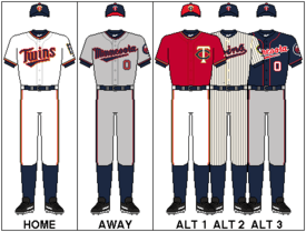 34. "Twins Uniforms and Logos | twinsbaseball.com: History". Minnesota Twins. MLB. June 19, 2012. Retrieved August 14, 2012.