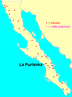 Mission La Purísima, was founded west of Loreto in Baja California Sur, by the Jesuit missionary Nicolás Tamaral in 1720. By 1735 it had been moved to a new location at the Cochimí ranchería known as Cadegomó, meaning "arroyo of the carrizos", about 30 kilometers south of the original site. The mission was abandoned in 1822. In the early twentieth century, the church was still in use, but by the start of the following century only a few traces of structures remained.
