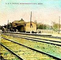 As the original county seat for Harrison County, Mississippi City was one of the most important towns on the Mississippi Gulf Coast in the latter half of the 19th century.[2] In 1869 and 1870, the Louisville and Nashville Railroad (L&NRR) was constructed through the southernmost section of Harrison County, connecting New Orleans, Louisiana, and Mobile, Alabama.[3] Mississippi City was situated on the L&NRR, approximately 71 miles (114 km) east of New Orleans. In 1900, the population of Mississippi City was 534 and increased to 800 by 1906. At that time, the town had both public and private schools, a courthouse, post office, hotels, and several churches. Because of the mild climate, the town's beach location on the Mississippi Sound attracted visitors throughout the year. Mississippi City served as the county seat of Harrison County from 1841 to 1902.