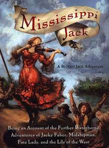 Mississippi Jack is the fifth book in the critically acclaimed Bloody Jack book series. The Bloody Jack series begins with Bloody Jack, Curse of the Blue Tattoo, Under the Jolly Roger, In the Belly of the Bloodhound, and continues with My Bonny Light Horseman, Rapture of the Deep, and The Wake of the Lorelei Lee. It continues after Jacky and her schoolmates return to Boston after being on a slave ship for several months.
