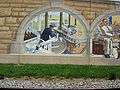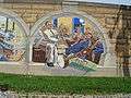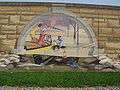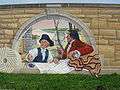 The Mississippi River Tales is a mural containing 24 panels covering nearly 18,000 square feet (1,700 m2) of the 15-foot (4.6 m)-high downtown floodwall in Cape Girardeau, Missouri. It illustrates the history of the area beginning with the Native Americans who inhabited the area between 900 and 1200. Each panel tells a story: Louis Lorimier platting the city in 1793, the transfer of Upper Louisiana from France to the United States in 1804, Missouri gaining statehood in 1821, the coming of the railroad in 1880, the Big Freeze of 1918-19 and the completion of the Bill Emerson Memorial Bridge, among many others. The paintings are in a style similar to that of painter Thomas Hart Benton. (Pamela Selbert, Chicago Tribune, November 18, 2007). The mural was painted by Chicago artist Thomas Melvin,[1] in collaboration with several local artists, and was dedicated at a public ceremony on July 7, 2005.