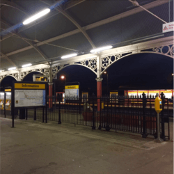 The station features two stained glass artworks, incorporated into the original station canopies. The two works Beach and Shipyards were created by artist Mike Davies. Beach was designed by schoolgirl Rosalind Hurst.[2]