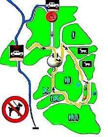 The Monts de Gueret Animal Park was created following a public initiative in 2001 and belongs to the Grand Gueret urban community.[7] The park is located in the central part of Chabrières forest, a few miles from the town of Gueret in the department of Creuse, France.[1]