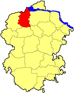 Morgaushsky District (Russian: Морга́ушский райо́н; Chuvash: Муркаш районĕ, Murkaš rajonĕ) is an administrative[1] and municipal[2] district (raion), one of the twenty-one in the Chuvash Republic, Russia. It is located in the north of the republic and borders with the Mari El Republic in the north, Cheboksarsky District in the east, Alikovsky District in the south, and with Yadrinsky District in the west. The area of the district is 845.3 square kilometers (326.4 sq mi).[3] Its administrative center is the rural locality (a selo) of Morgaushi.[1] Population: 34,884 (2010 Census);[4] 37,127 (2002 Census);[7] 38,465 (1989 Census).[8]