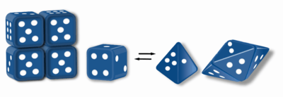 Morpheeins are proteins that can form two or more different homo-oligomers (morpheein forms), but must come apart and change shape to convert between forms. The alternate shape may reassemble to a different oligomer. The shape of the subunit dictates which oligomer is formed.[1][2] Each oligomer has a finite number of subunits (stoichiometry). Morpheeins can interconvert between forms under physiological conditions and can exist as an equilibrium of different oligomers. These oligomers are physiologically relevant and are not misfolded protein; this distinguishes morpheeins from prions and amyloid. The different oligomers have distinct functionality. Interconversion of morpheein forms can be a structural basis for allosteric regulation.[1][2][3][4] A mutation that shifts the normal equilibrium of morpheein forms can serve as the basis for a conformational disease.[5] Features of morpheeins can be exploited for drug discovery.[1][3][6] The dice image (Fig 1) represents a morpheein equilibrium containing two different monomeric shapes that dictate assembly to a tetramer or a pentamer. The one protein that is established to function as a morpheein is porphobilinogen synthase,[2][7][8] though there are suggestions throughout the literature that other proteins may function as morpheeins (for more information see "Table of Putative Morpheeins" below).