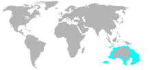 Their breeding habitat is on islands and the coast of New Zealand, Victoria and Tasmania, with 87% of the adult population in New Zealand. They normally nest in large colonies on coastal islands. In New Zealand there are colonies of over 10,000 breeding pairs each at Three Kings Islands, Whakaari / White Island and Gannet Island. There is a large protected colony on the mainland at Cape Kidnappers (6,500 pairs). There are also mainland colonies at Muriwai and Farewell Spit, as well as numerous other island colonies.[2]