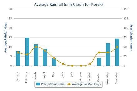 It has between 60 - 100 days of snowfall in the mountains, between December and March.