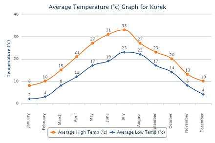 Temperature ranges from 2 - 33°C. The lowest temperature is -13°C.