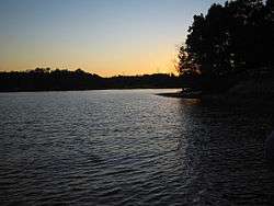 Mountain Island Lake is a lake northwest of Charlotte, North Carolina created in 1924 to coincide with the building of Mountain Island Hydroelectric Station. It is named after the mountain which appears as an island in the lake, and the surrounding area is identified by the lake's name. The shape of the lake follows the meander of the Catawba river's course, dammed near the Mount Holly Wastewater Plant. Full pond elevation is approximately 647.5 feet (197 m). The lake has around 3,281 acres (13 km2) of surface area and 61 miles (98 km) of shoreline.