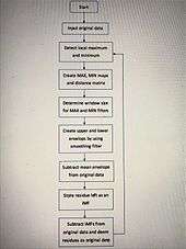 where is defined as the square region of window size, and is the window width of the smoothing filter which equals to . Therefore, the MAX and MIN filter will form a new 2-D matrix for envelope surface which will not change the original 2-D input data.[6]