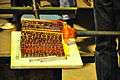 Example of picking up a murrina pattern onto a blowpipe while blowing glass.