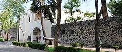 The Museo Nacional de las Intervenciones (National Museum of the Interventions) is located in a former monastery, which was built on top of an Aztec shrine.[1] The museum in split into two sections. The downstairs is dedicated to the site’s history as a monastery, and the upstairs rooms are dedicated to artifacts related to the various military conflicts that have taken place on Mexican soil and how these have shaped the modern Mexican republic.[2][3] The museum is located on Calle 20 de Agosto, one block east from Division del Norte, following Calle Xicoténcatl,[2] in Churubusco. It is one of five museums that are operated directly by the Instituto Nacional de Antropología e Historia (INAH).[3]
