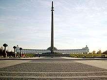 The Museum of the Great Patriotic War is a history museum located in Moscow at Poklonnaya Gora. The building was designed by architect Anatoly Polyansky.[1] Work on the museum began on March 3, 1986, and the museum was opened to the public on May 9, 1995.[2] The museum features exhibits and memorials concerning World War II, known in Russia as "The Great Patriotic War".