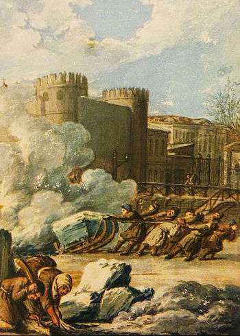 A. I. Musin-Pushkin lived for 17 years in that house, from 1782 till 1798.[22] Nearly all his children were born there, and his main brainchild – the famous collection of Russian antiquities – was created there. Members of “Lovers of Motherland History Study Group” attended meetings there. Formed by Musin-Pushkin, the study group was based upon Vasily Tatishchev’s (V. N. Tatischev) theoretical views: I. N. Boltin and Ivan Yelagin (I. P. Yelagin), historian-archivists N. N. Bantysh-Kamensky and A. F. Malinovsky and many others were members of the study group. They gathered to discuss historical and linguistic issues, and the owner willingly allowed them to use his materials. Nikolay Karamzin (N. M. Karamzin) was also associated with the study group. The main purpose of the study group was to preserve a wide range of ancient sources about history and culture of the Russian State and to use that range in social and scientific circulations. Due to Musin-Pushkin, zeal for artefacts of the past got – for the first time in Russia – hitherto unseen scale, organization and insistence to find various sphere of sources, including materials for history of 18th century. Yaroslav the Wise (Yaroslav Mudry’s) Russkaya Pravda (“The Russian Truth”), Vladimir II Monomakh’s “Moral”, Musin-Pushkin’s own work about Tmutarakan princedom’s location and Laurentian Codex (Lavrenty’s annals) were made ready for publishing there. After all, it was exactly there where the pearl of his collection – the famous The Tale of Igor's Campaign – was kept and made ready for publishing. In the first publishing in 1800 “The Song …” was titled “The ironic song about Novgorod-Seversky appanage prince Igor Svyatoslavovich’s campaign against the Polovtsians. The Song was written in old Russian language at the end of 12th century and it was transferred into presently used dialect.“[23]