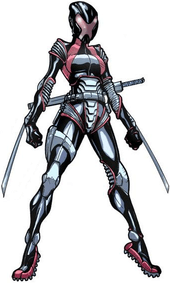 Highly skilled athlete Trained martial artist Exceptional swordswoman Excellent physical condition Peak-level agility and reflexes Pyrokinesis Telekinesis Limited mind control Via Mutant Zero armor: Enhanced strength Arsenal of bladed weapons |
