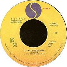 "My City Was Gone" is a song by the rock group The Pretenders. The song originally appeared in October 1982 as the B-side to the single release of "Back on the Chain Gang";[1] the two-sided single was the comeback release for the band following the death of founding bandmember James Honeyman-Scott. The song was included on the album Learning to Crawl released in early 1984, and it became a radio favorite in the United States. It is sometimes referred to as "The Ohio Song" for its constant reference to the state, though it is not part of the song's title. The song's final title was due to the fact that there had already been a song called "Ohio" by Crosby, Stills, Nash and Young.