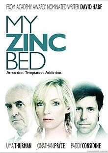 My Zinc Bed is a 2008 British television drama film[1] directed by Anthony Page and based on the stage play of the same name[2] by David Hare. It was commissioned by the BBC and produced in association with HBO Films.