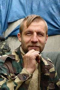 Mykhailo Vitaliyovych Havryliuk (Ukrainian: Миха́йло Віта́лійович Гаврилю́к, born 15 August 1979 in Yarivka, Khotyn Raion)[2] is a Ukrainian public figure. He participated in the Euromaidan protests and was tortured by Berkut officers in January 2014.[3][4][5] In October 2014, he was elected to the Verkhovna Rada during the Ukrainian parliamentary election, as a candidate of People's Front, by winning the electoral district of Irpin with 19.43% of the votes.[6][7][8] Havryliuk is a member of the territorial defense battalion Zoloti Vorota.[6]