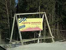 Sign at the entrance of Mystery Mountain Winter Park.