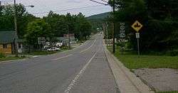 14 miles (23 km) northeast of Delhi in northeastern Delaware County, NY 10 passes through both Hobart and Stamford, a pair of villages located on the northernmost few miles of the Delaware's west branch. In the latter, NY 10 meets NY 23. North of Stamford in Schoharie County, NY 10 turns northeast, bypassing the 2,900-foot (880 m) tall Mine Hill, home to the source of the west branch of the Delaware. At the northern edge of the hill, NY 10 curves back to the northwest to serve the Jefferson hamlet of the same name.[3]
