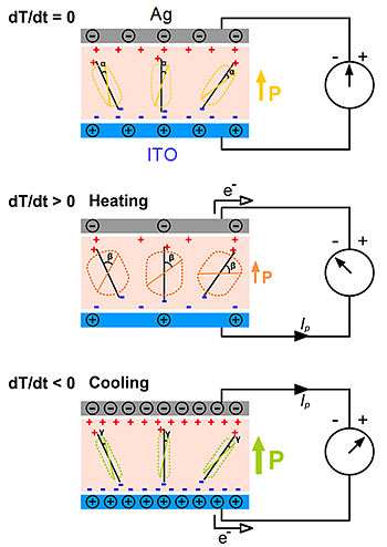 The working principle of pyroelectric nanogenerator will be explained for 2 different cases: the primary pyroelectric effect and the secondary pyroelectric effect.