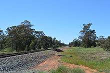 The Naradhan railway line is a railway line in south-western New South Wales, Australia. It branches from Ungarie on the Lake Cargelligo line and heads in a westerly direction, passing through Youngareen and Kikoira, to the small town of Naradhan. The line opened on 11 February 1929 [1][2][3] to open up the region for agriculture, and is currently used for seasonal grain haulage. The line saw passenger services until 1974.