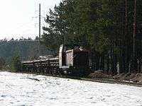 The Tver plant of building materials №2 located near the town of Tver. The first section of the railway is 3 kilometres (1.9 mi) long was built in 1951.[1] The main task of the narrow gauge railway is the transportation of sand from the quarry to the KSM-2 factory. It runs on a daily basis, the speed of the train is 35-40 km/h, the total length of the narrow gauge railway is 9 kilometres (5.6 mi).