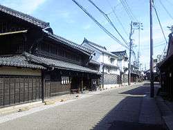The classic ukiyoe print by Ando Hiroshige (Hoeido edition) from 1831 to 1834 depicts travellers passing by open-fronted shops selling tie-died cloth, typically used for making yukata summer kimono, which was a local speciality of the region.[2] The railroad bypassed Narumi-juku in the Meiji period, and a portion of the old town is preserved as a tourist attraction.