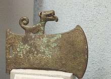 ![]() Exhibit of an axe head with animal decoration in Bolivia's National Museum of Archaeology | |