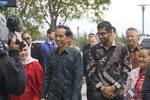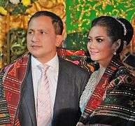 The National costume of Indonesia are the national costume that represent the Republic of Indonesia. It is derived from Indonesian culture and Indonesian traditional textile traditions. Today the most widely recognize Indonesian national costume are Batik[1] and Kebaya, although originally those costumes mainly belong within the culture of Java and Bali, most prominently within Javanese, Sundanese and Balinese culture.[2] Since Java has been the political and population center of Indonesia, folk costume from the island has become elevated into national status.