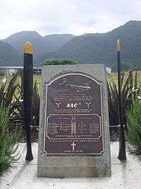 A memorial to those who died in the accident. The Kaimai Ranges are seen behind the memorial. | |
