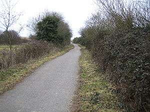 Newchurch railway station, was an intermediate station situated on the edge of Newchurch village [1] on the line from Newport to Sandown incorporated by the Isle of Wight (Newport Junction) Railway in 1868,[2] opened in 1875 and closed 81 years later.[3] Despite its rural location a “respectable”[4] number of families alighted at the simple station, "little more than a wooden hut”.[5] The nearest location to the site is a bungalow, Newchurch Crossing.[6]